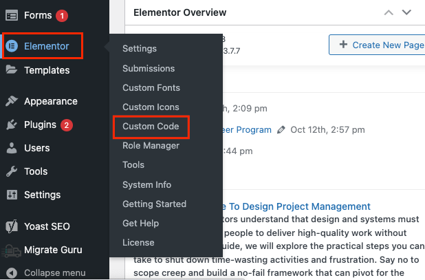 How to add Custom code using Elementor?
